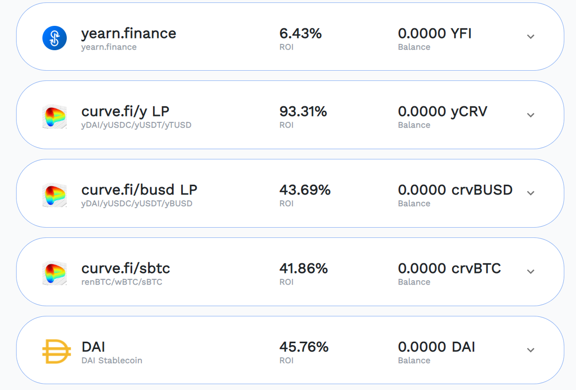 You can access the list of currently available vaults at https://yearn.finance/vaults. Tokens are deposited into their respective yVaults and are then reinvested based on the best current opportunities in the market.